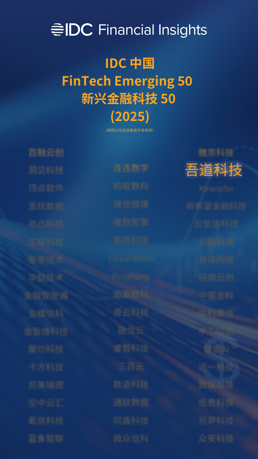 再获认可 | 吾道科技荣登“IDC中国新兴金融科技50”榜单